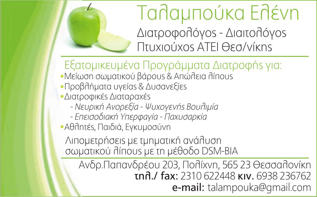 Διατροφικές διαταραχές, νευρική ανορεξία, παχυσαρκία, βουλιμία, λιπομέτρηση, ρύθμιση βάρους, παθήσεις για παιδιά - εγκύους - θηλάζουσες - αθλητές